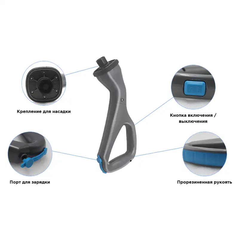 ♻ 4 сменные насадки. В комплекте находятся 4 щетки для чистки, подходящие для различного применения: швабра из микрофибры подходит для пола и автомобиля; большая плоская щетка подходит для чистки кафеля, духовки и плиты; маленькая плоская щетка идеально подходит для столов, стульев и шкафов; конусообразная щетка отлично подойдёт для очистки подоконника и узких мест. Правильный подбор насадки экономит вашу энергию.