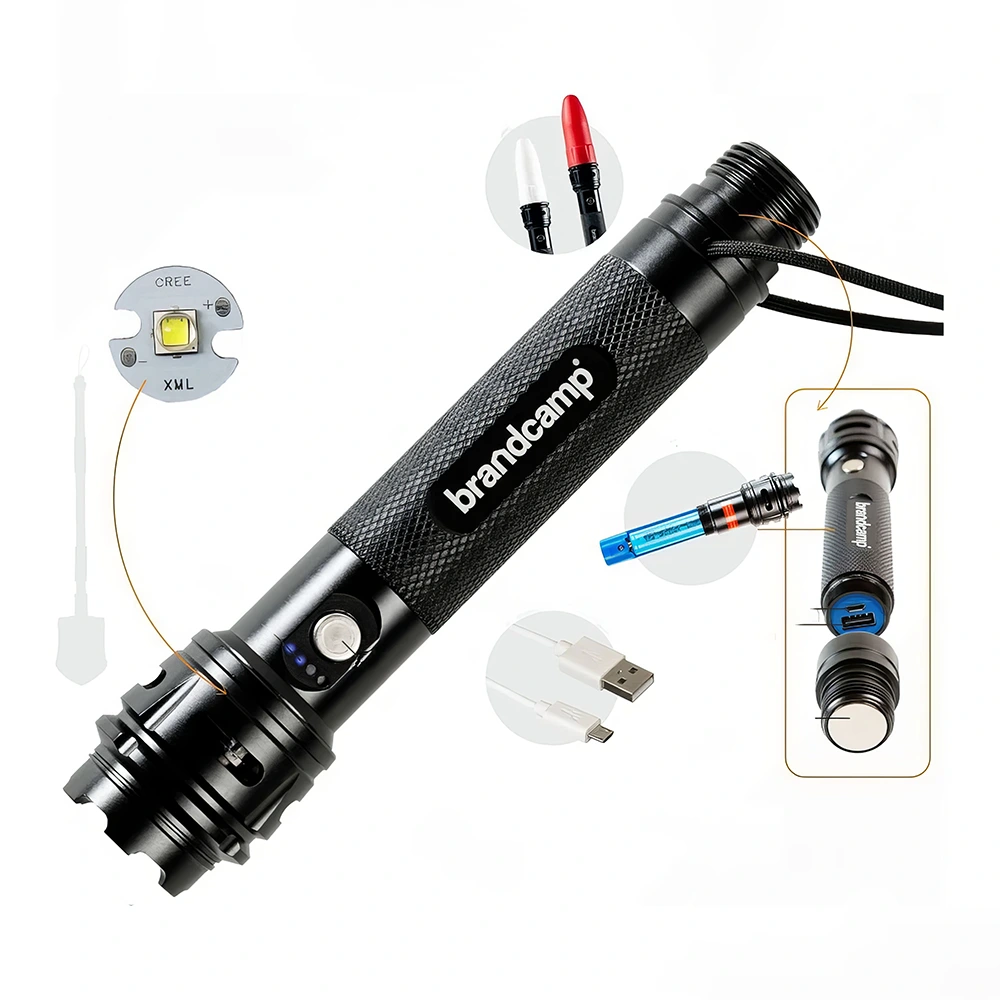 - Встроенный светодиодный фонарик лопаты Brandcamp способен работать до 8 часов в режиме максимальной яркости на одном полном заряде аккумулятора.