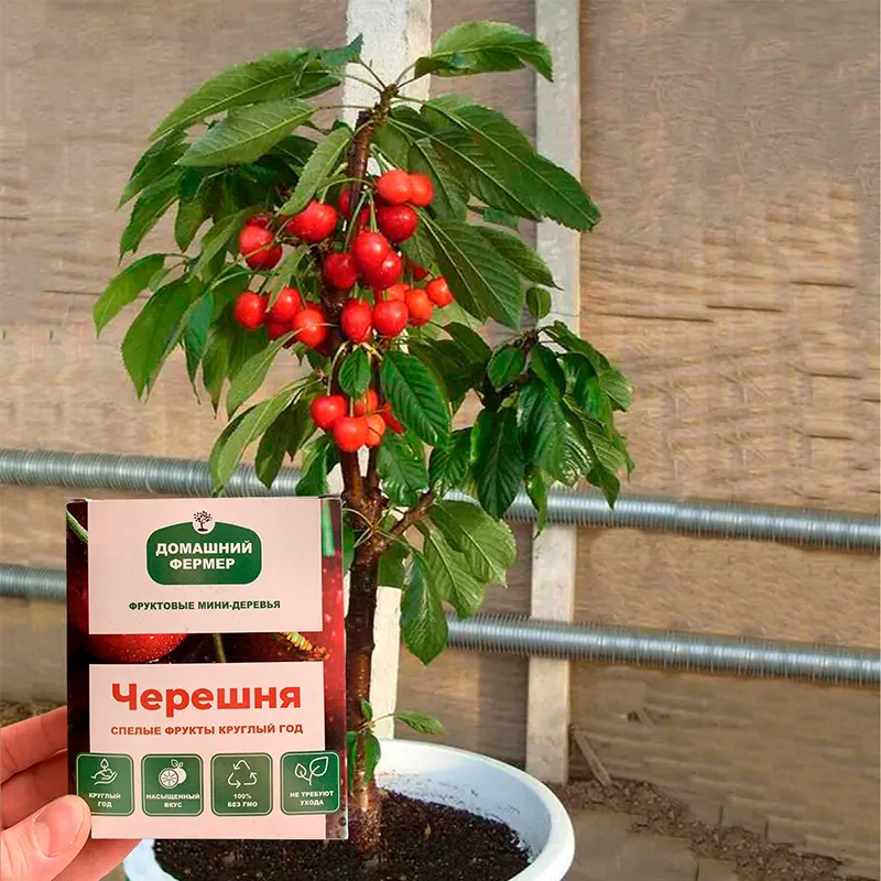 🍒 Семена мини-черешни не являются ГМО-продуктом. Семена всходят через месяц после посадки, а через 4 месяца уже можно собрать первый урожай. Собирайте плоды только после того как они полностью созреют, это значительно продлит срок жизни дерева.