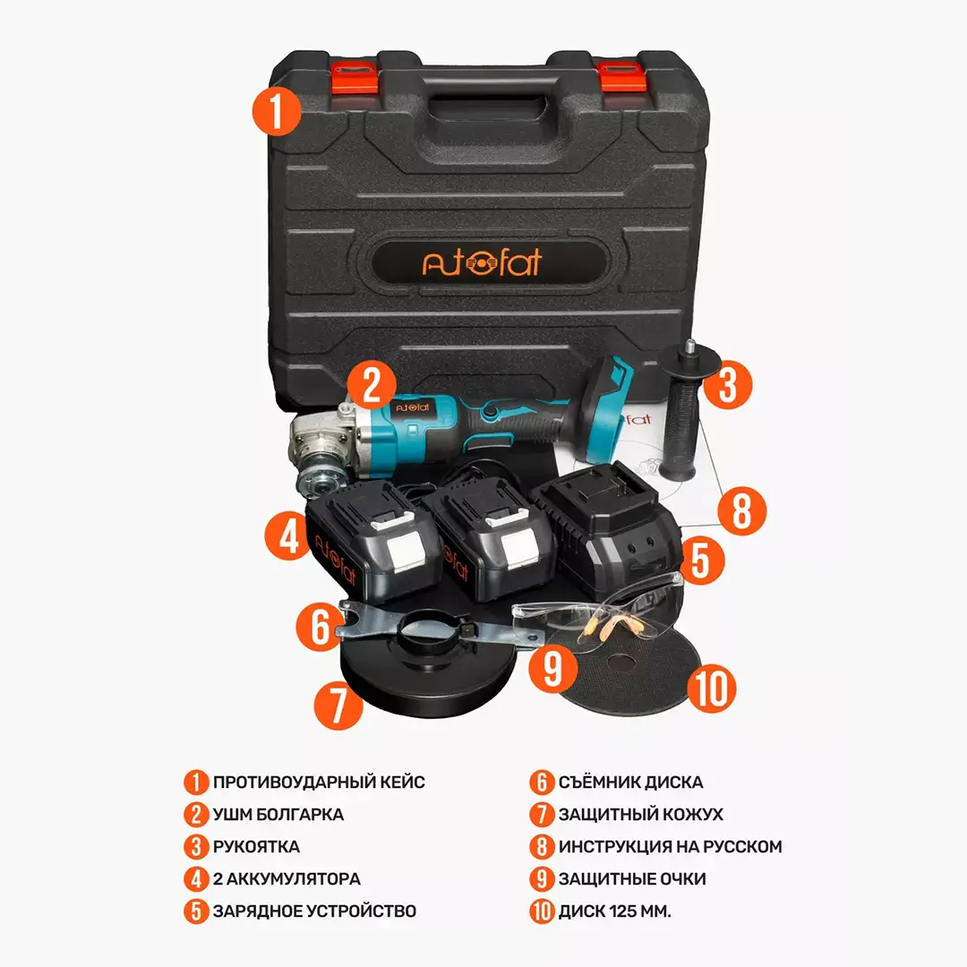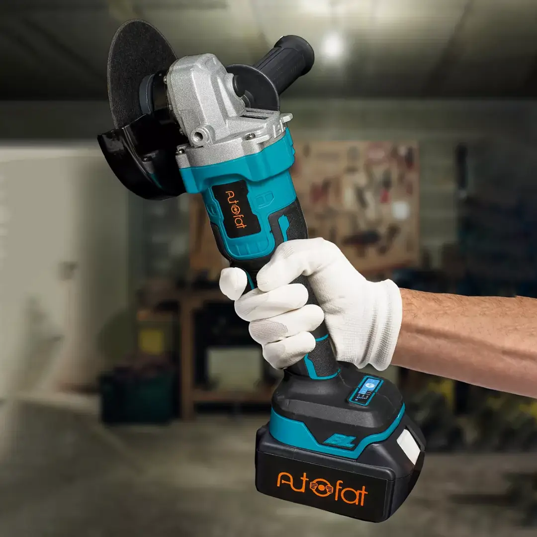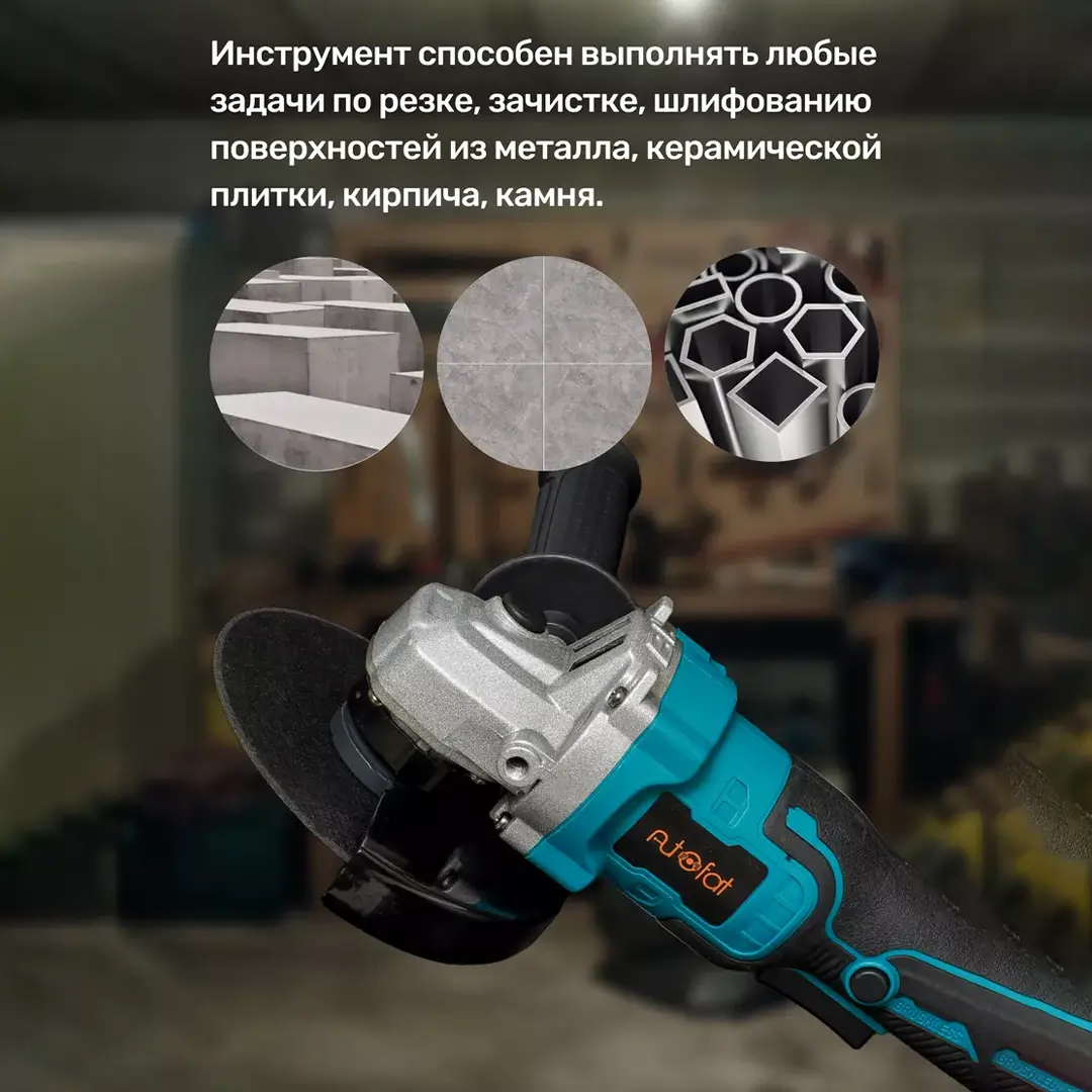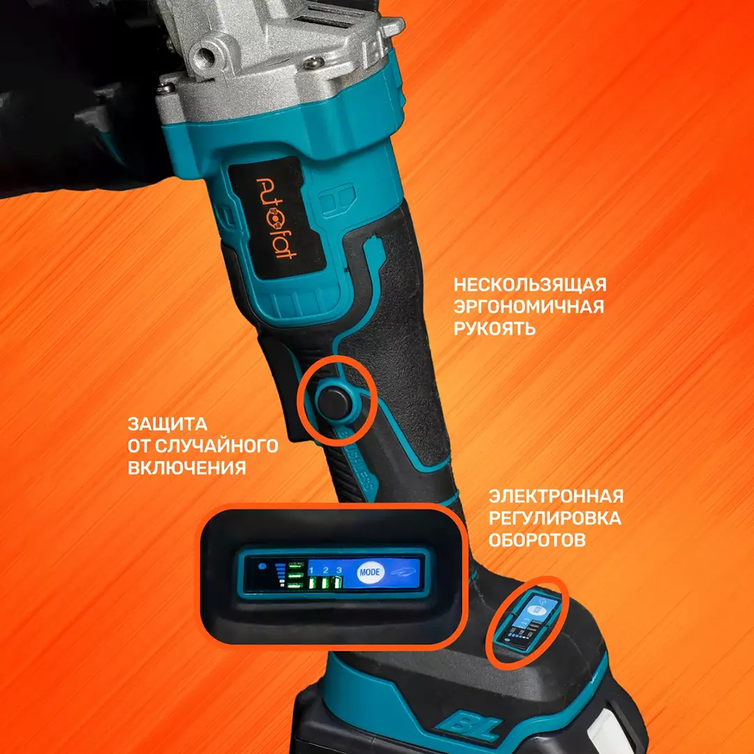 Компактная японская мини-болгарка AutoFat с электронной регулировкой оборотов и мощностью 9000 об/мин — незаменимый помощник для мелких работ дома и в саду. Мини-болгарка оснащена антискользящей эргономичной рукоятью и надежной защитой от случайного включения для максимальной безопасности. Li-ion аккумулятор обеспечивает полную свободу перемещения без привязки к электросети, а компактные размеры позволяют работать в самых труднодоступных местах. В расширенную комплектацию беспроводной болгарки входят аккумулятор, диски для резки и защитные очки в подарок!