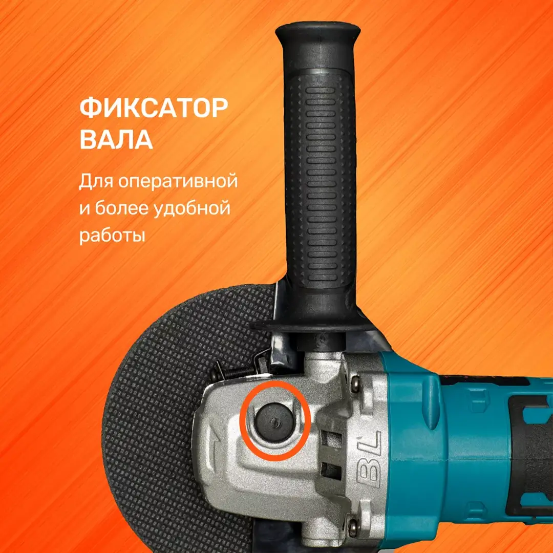 - Поскольку модель оснащена бесщеточным двигателем, необходимость в замене угольных щеток отсутствует полностью. Это устраняет один из наиболее частых источников неисправностей у классических электрических инструментов и значительно продлевает срок службы болгарки.