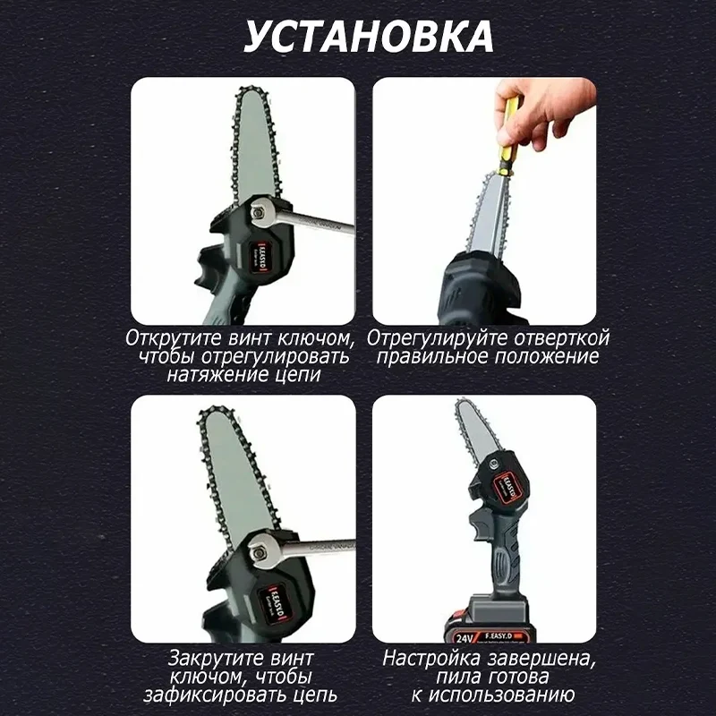 🍃 Экологичность. Благодаря отсутствию выбросов вредных веществ, цепная аккумуляторная мини-пила более экологична и безопасна для окружающей среды, чем её бензиновые аналоги.