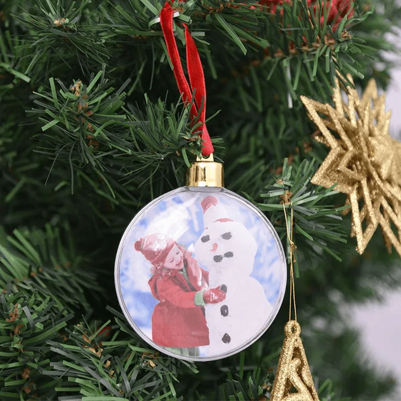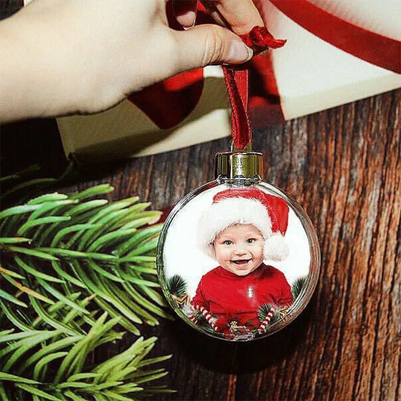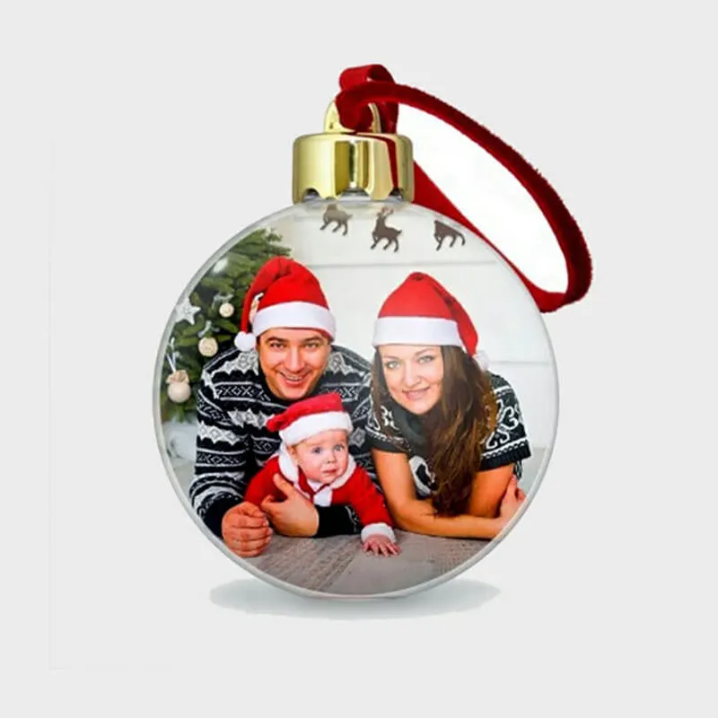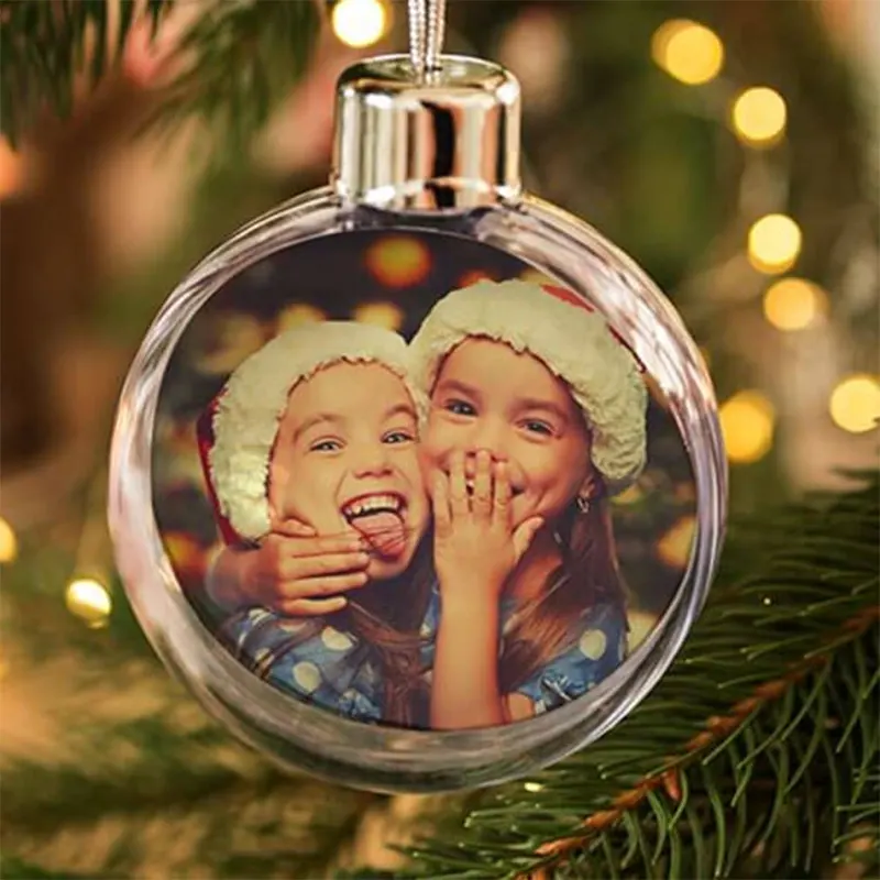 Оригинальное елочное украшение с личными фотографиями выполнено из специального прочного пластика, который обладает превосходной прозрачностью. Стильный новогодний декор с семейными снимками отличается высокой устойчивостью к механическим воздействиям. Фотошары на елку не теряют привлекательного внешнего вида даже после многих лет использования.