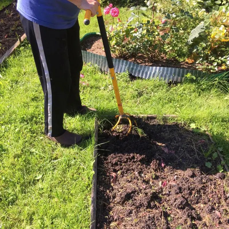 Подходит для рыхлой почвы. Идеально подходит для клумб, цветочных ящиков, работы вокруг кустарников и кустов и в других труднодоступных местах, способствуя свободному потоку воды, воздуха и удобрений. Перед работой с культиватором убедитесь, что в почве нет бетонных кусков, камней или арматуры.
