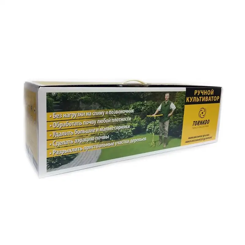 Ручной культиватор Торнадо — это механический садовый инструмент, оптимизированный для работы на дачном участке и в огороде. Культиватор работает по принципу механической вращающейся шестерни, которая проникает в почву и прорезает ее на глубину до 30 см. Культиватор Торнадо облегчает работу по удалению сорняков и подготовке почвы для посадки саженцев, цветов и овощей. Этот механический садовый инструмент не требует использования электричества или бензина, что делает его экологически чистым и экономичным в использовании. Ручной культиватор Торнадо — это отличное решение для тех, кто ищет простой и эффективный способ обработки почвы на своем участке без использования мотоблока или мотокультиватора.