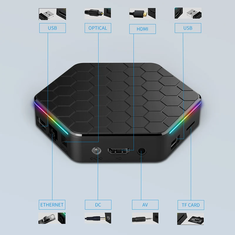 ТВ-бокс T95Z Plus поддерживает подключение различных периферийных устройств через USB-порты. Можно просматривать фотографии с флешки, петь караоке с микрофоном, использовать беспроводную клавиатуру и мышь для удобной навигации.